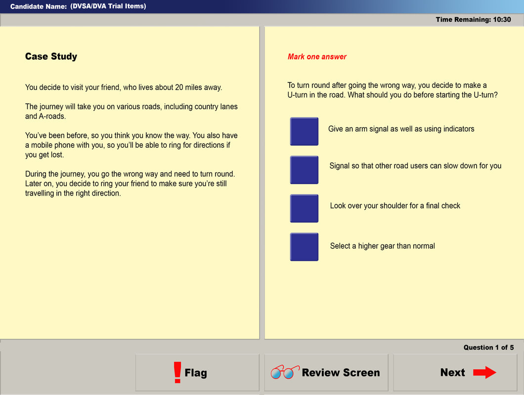 Typically, the case study section will be presented within the overall structure of the theory test. While you can navigate through the test, it’s important to manage your time wisely and not leave it to the last minute.